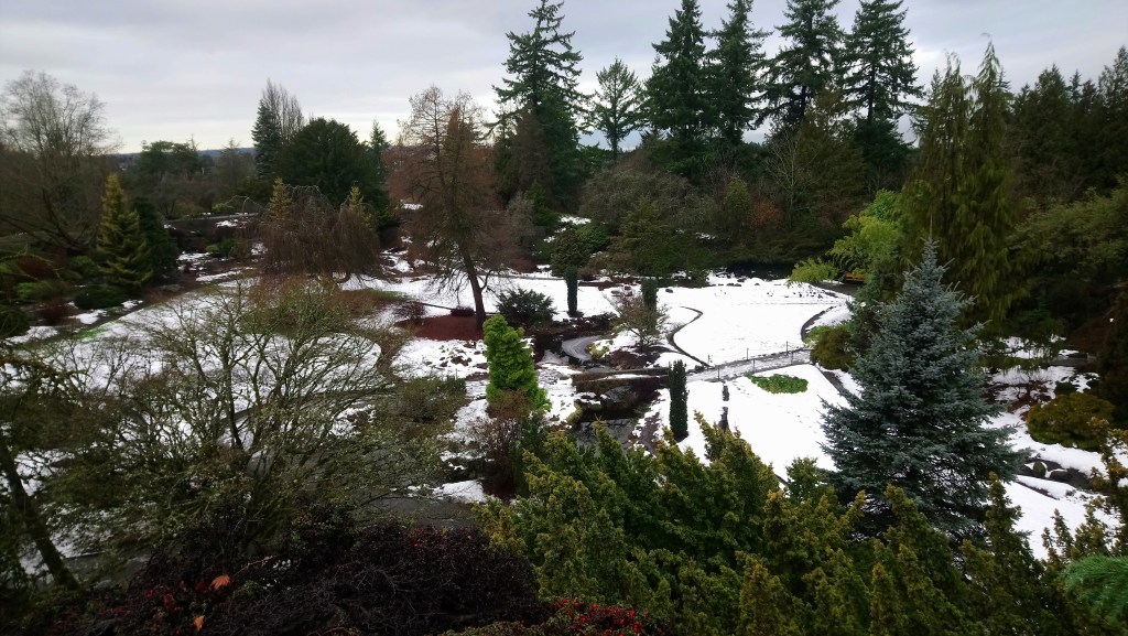 Going for a walk around the streets of Vancouver without a map, I happily stumbled into Queen Elizabeth Park and had a lovely walk through the gardens and rockeries, including cacti in the snow!